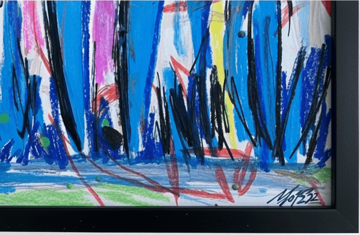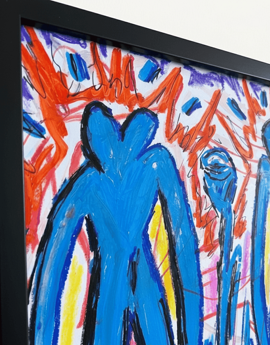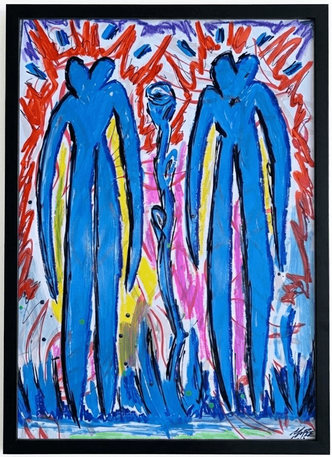 Le imponenti figure blu, protagoniste della tela, sono il frutto di un’evoluzione accelerata: la leggenda narra che i Giganti abbiano aumentato la loro statura negli anni per raggiungere fiori altissimi, spinti dall'attrazione fatale per il loro profumo inebriante.